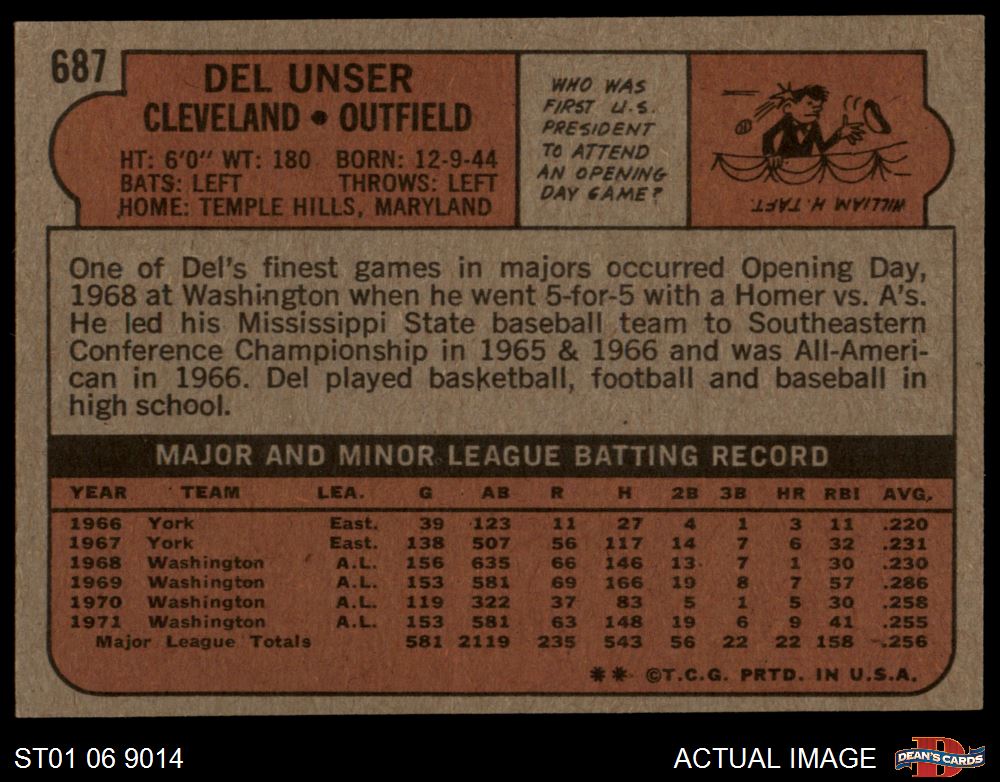 1972 Topps #687 Del Unser