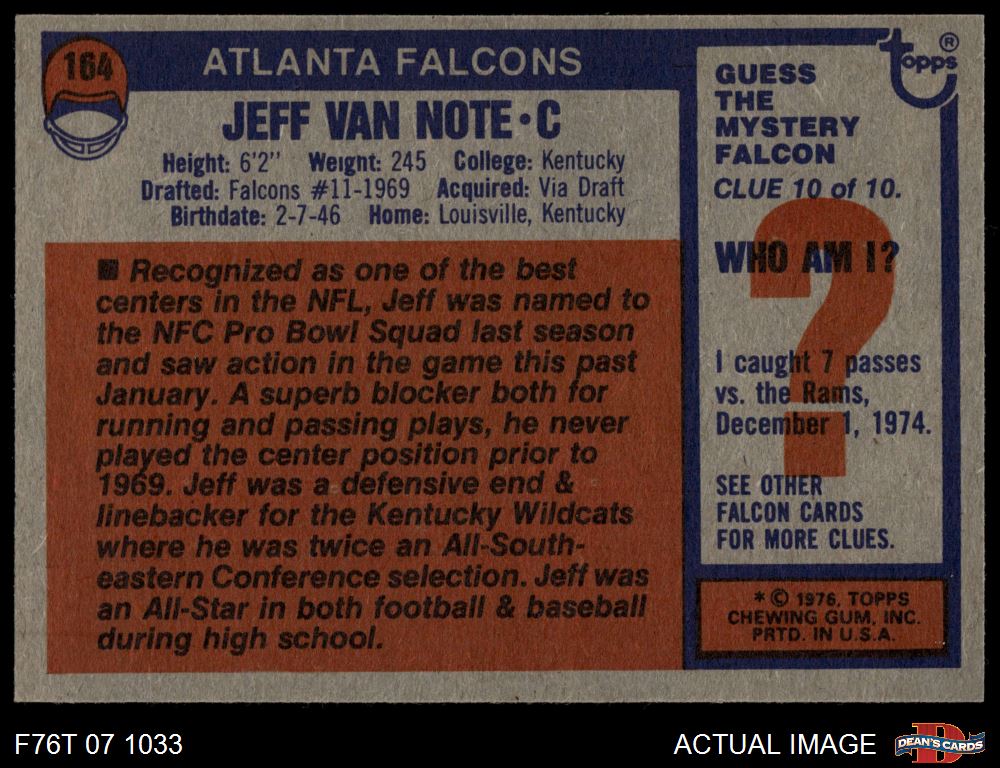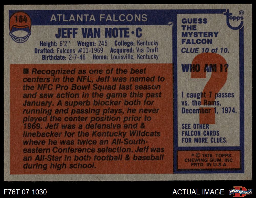 1976 Topps #164 Jeff Van Note 7 - NM