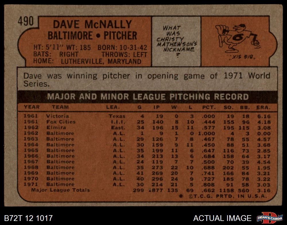 1972 Topps #490 Dave McNally 2 - GOOD
