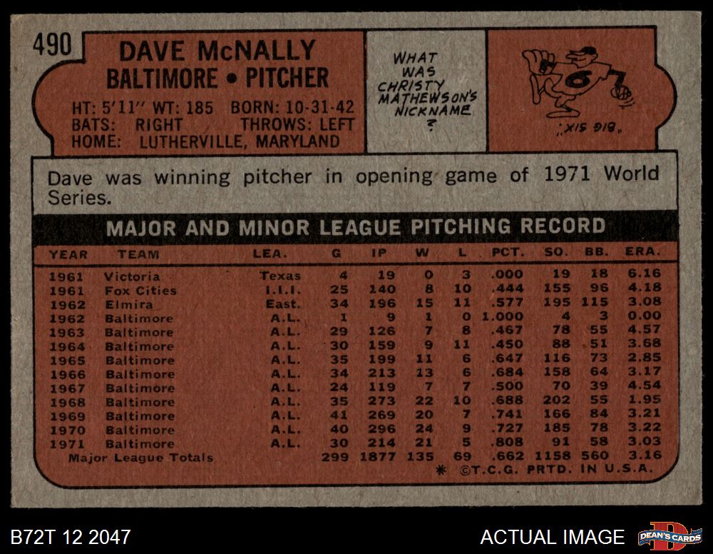 1972 Topps #490 Dave McNally 5.5 - EX+
