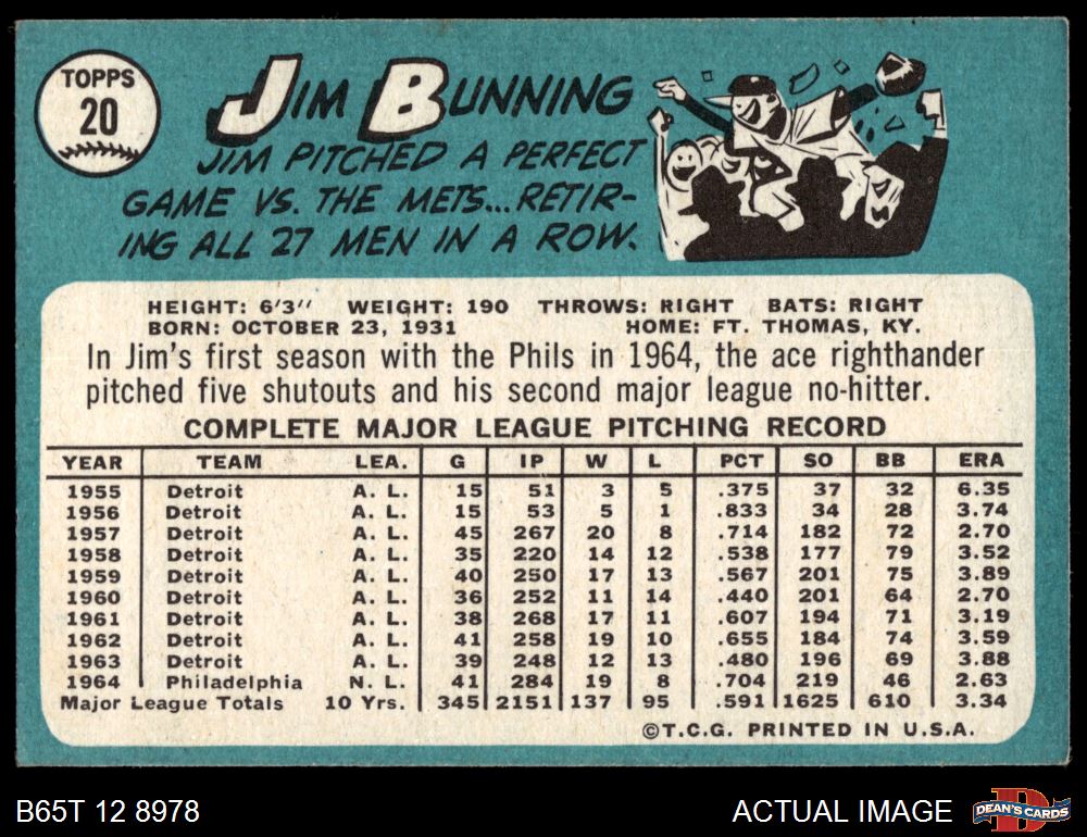 1965 Topps #20 Jim Bunning 4.5 - VG/EX+