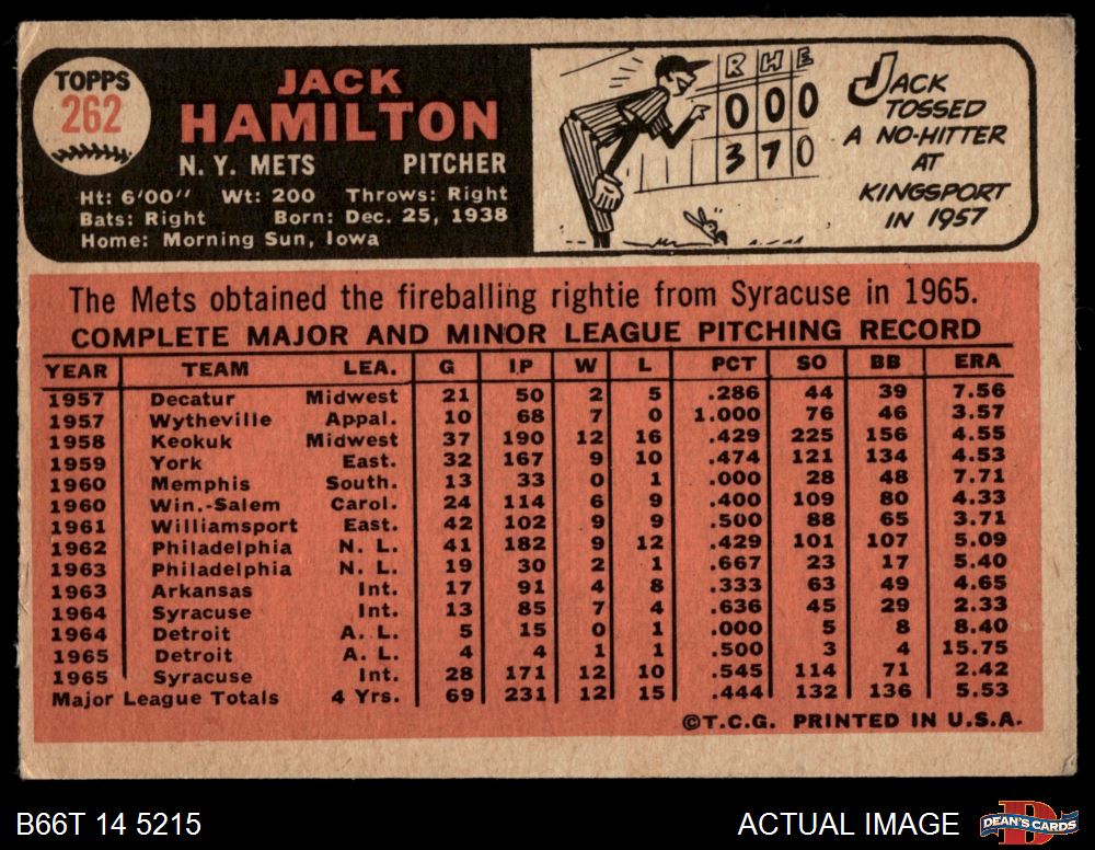 1966 Topps #262 Jack Hamilton 2.5 - GD+