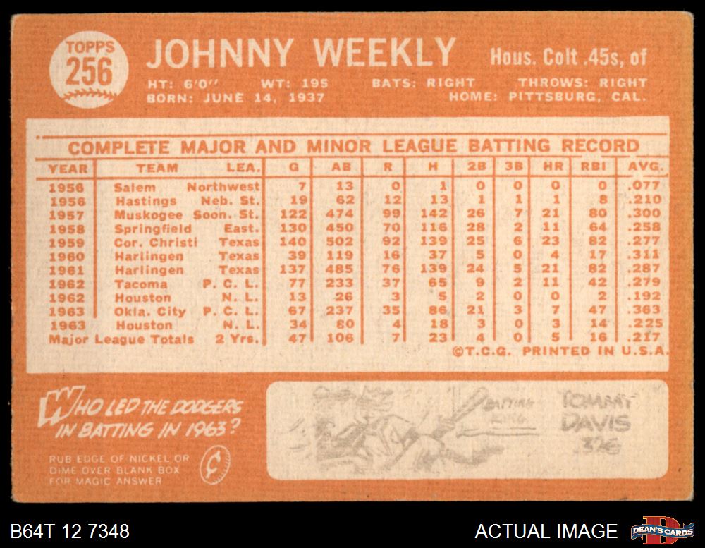 1964 Topps #256 Johnny Weekly 3 - VG