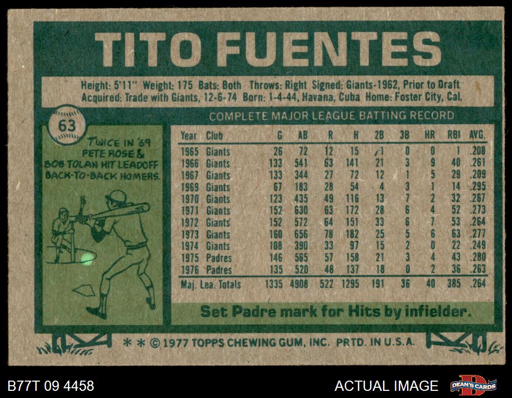 1977 Topps #63 Tito Fuentes 4 - VG/EX