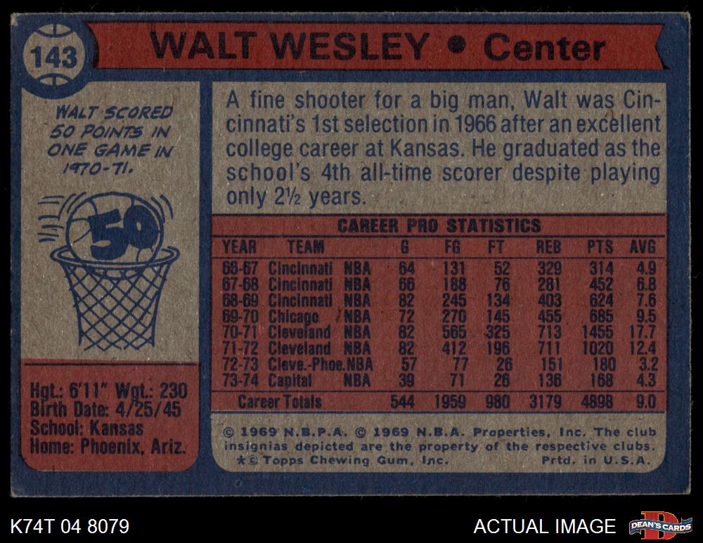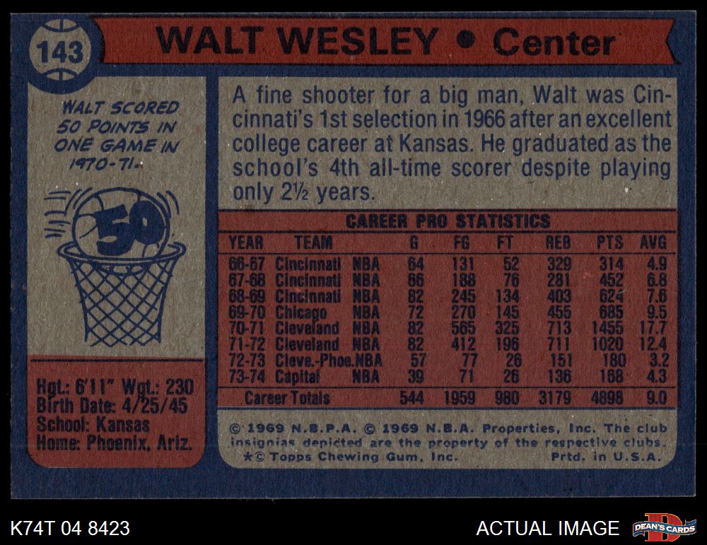 1974 Topps #143 Walt Wesley 4 - VG/EX