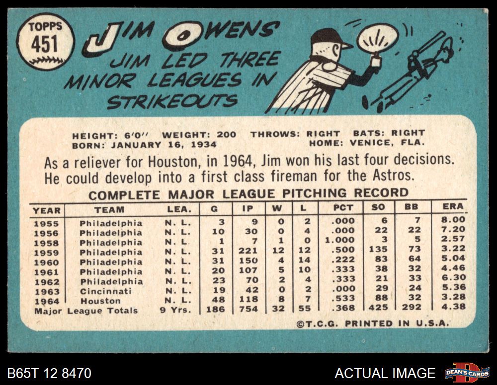 1965 Topps #451 Jim Owens 4 - VG/EX