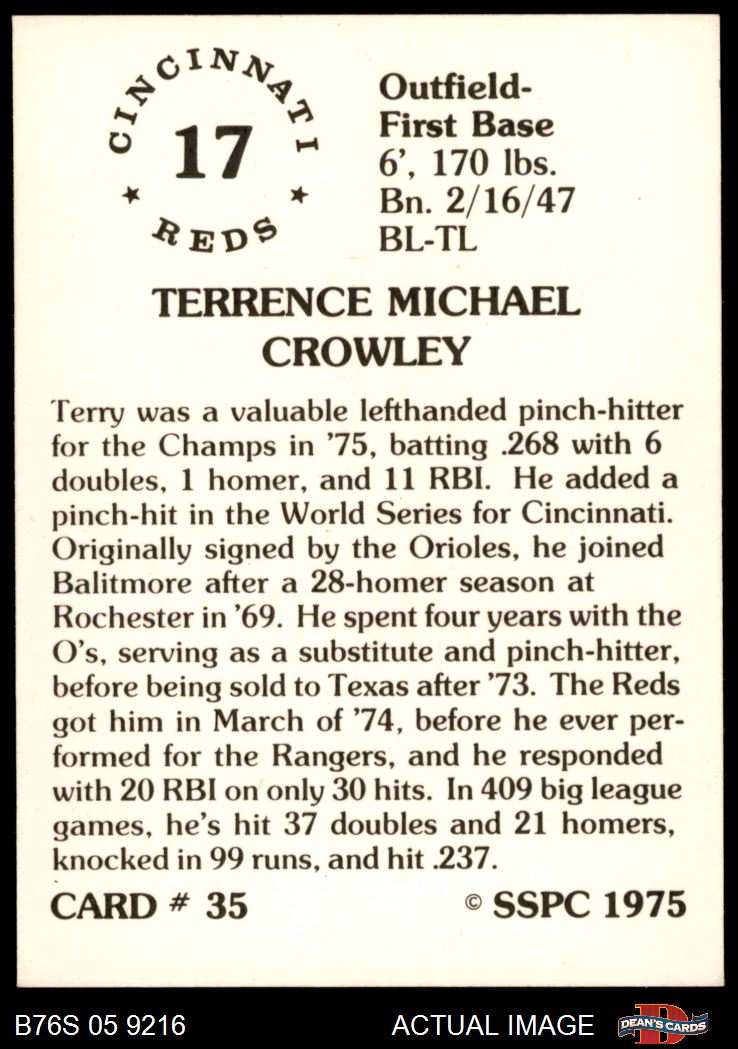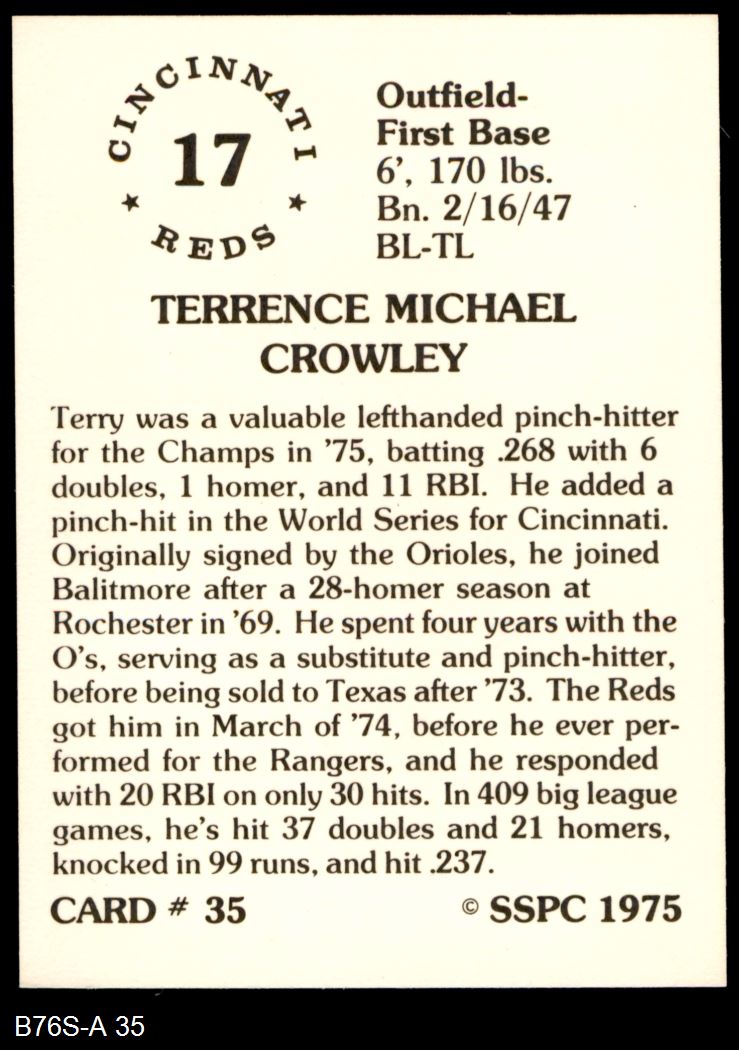 1975 SSPC #35 Terry Crowley