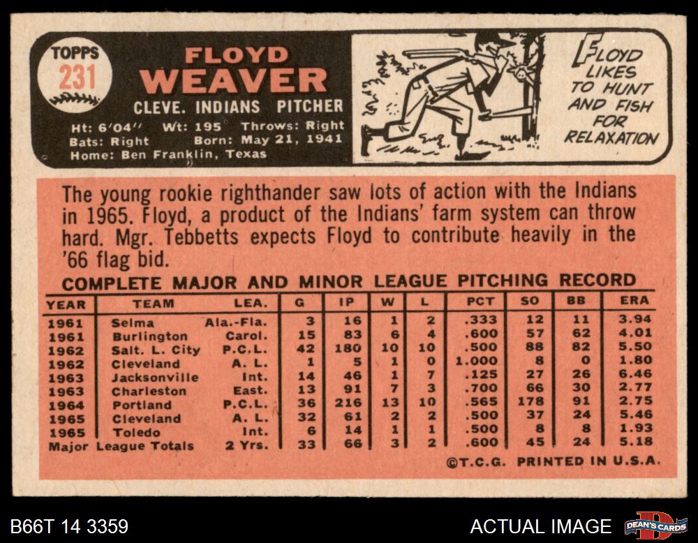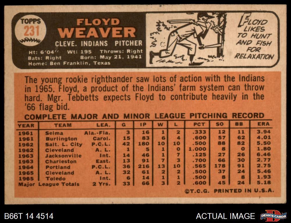 1966 Topps #231 Floyd Weaver