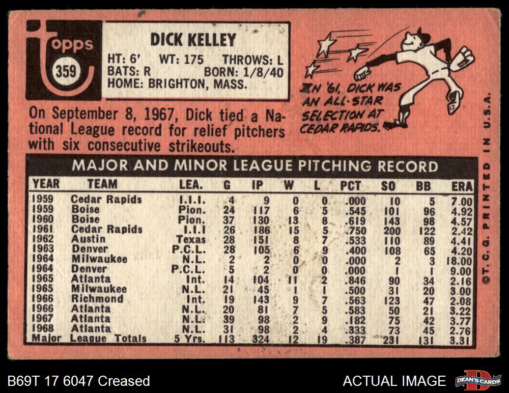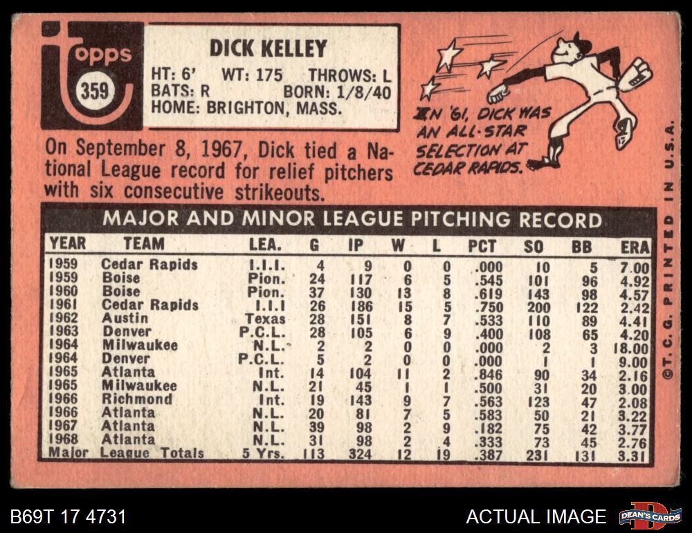 1969 Topps #359 Dick Kelley 2 - GOOD
