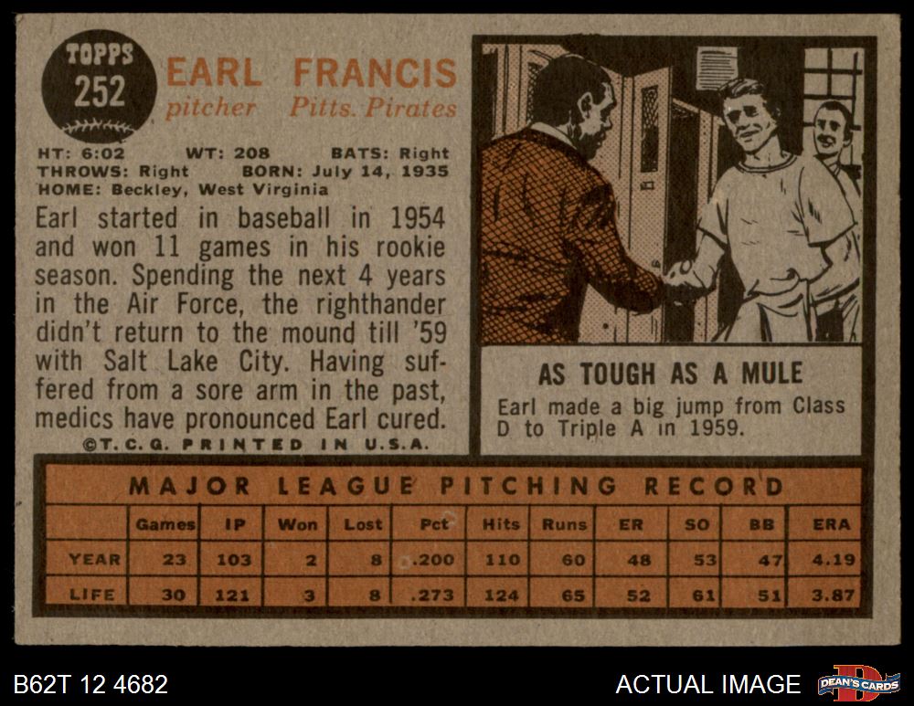 1962 Topps #252 Earl Francis 5 - EX