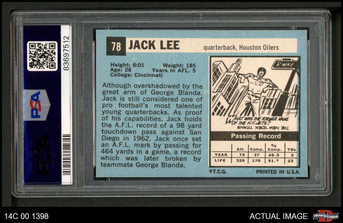 1964 Topps #78 Jacky Lee PSA 7 - NM
