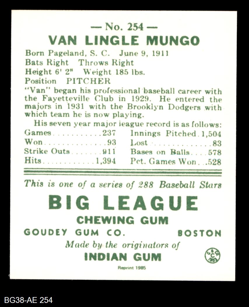 1938 Goudey Heads-Up Reprint #254 Van Mungo 8 - NM/MT