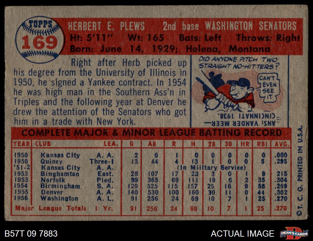 1957 Topps #169 Herb Plews 1.5 - FAIR