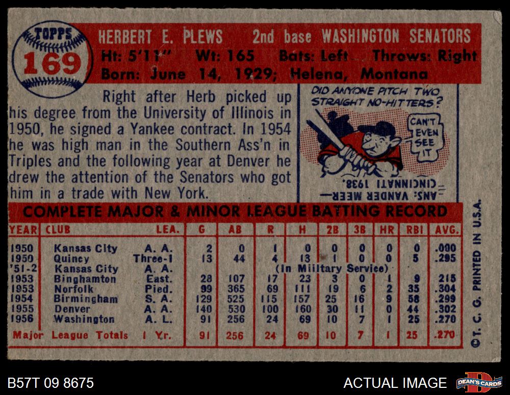 1957 Topps #169 Herb Plews 4 - VG/EX