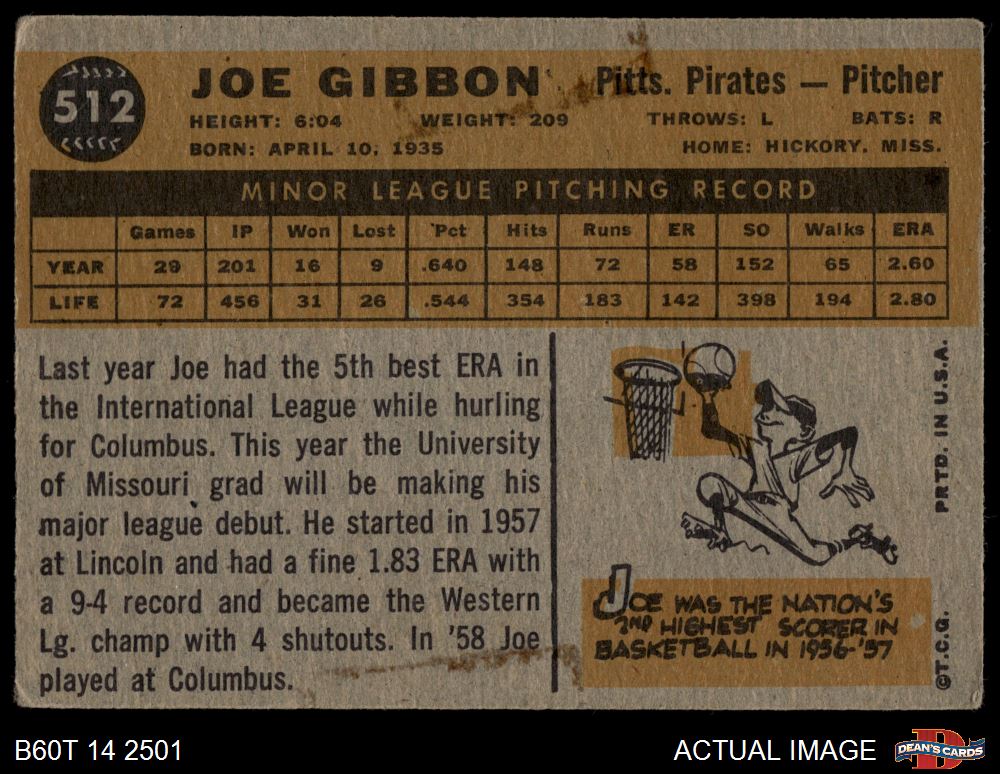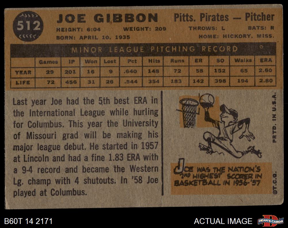 1960 Topps #512 Joe Gibbon 1.5 - FAIR
