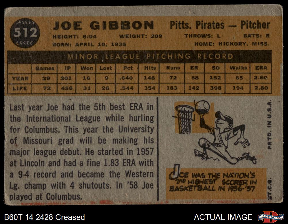 1960 Topps #512 Joe Gibbon 2 - GOOD