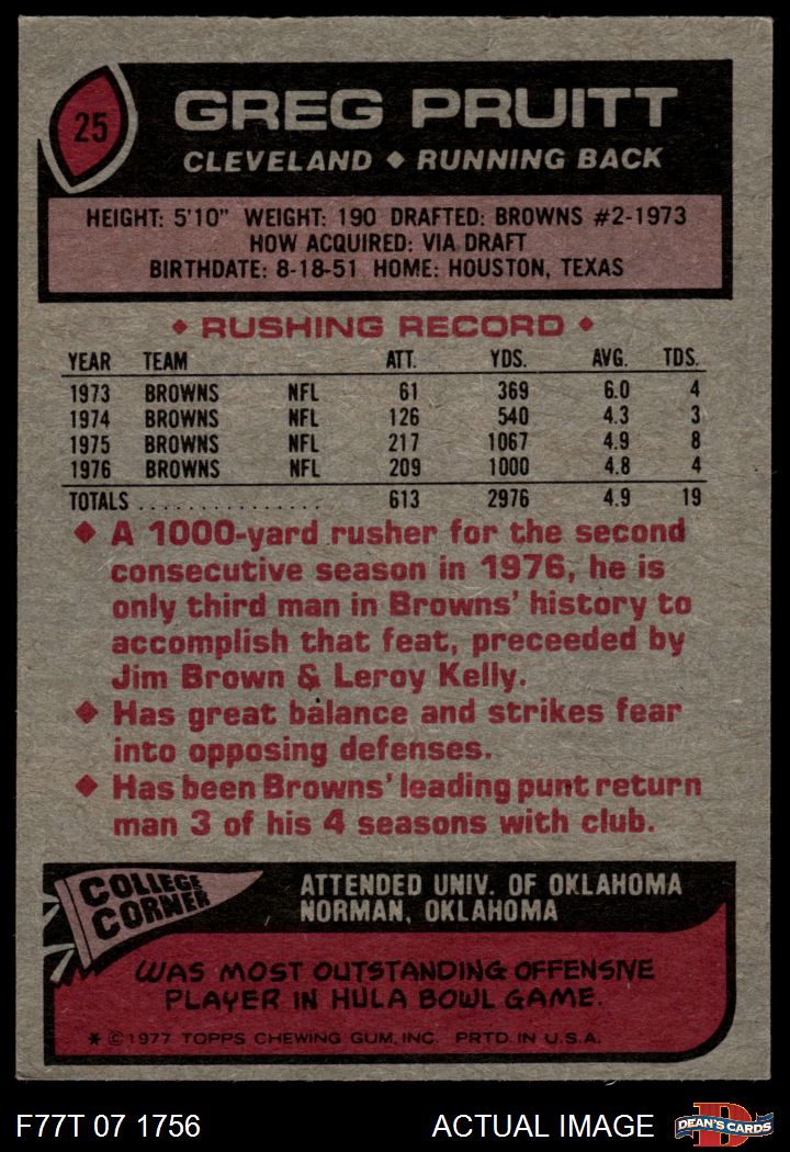 1977 Topps #25 Greg Pruitt 3 - VG