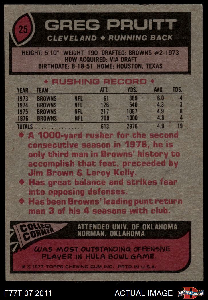 1977 Topps #25 Greg Pruitt 4.5 - VG/EX+