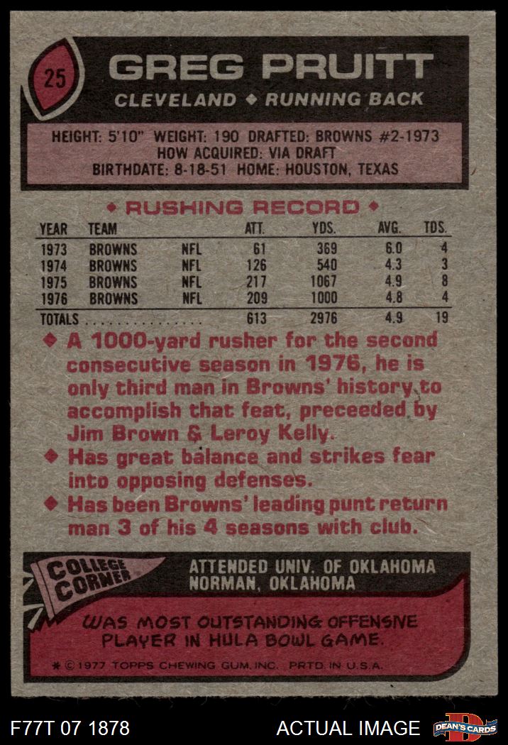 1977 Topps #25 Greg Pruitt 6 - EX/MT