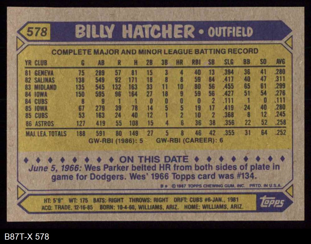 1987 Topps #578 Billy Hatcher