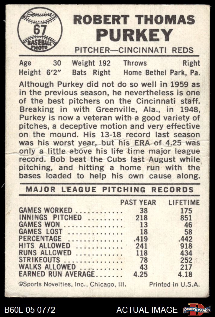 1960 Leaf #67 Bob Purkey 1.5 - FAIR