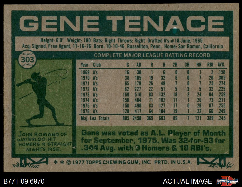 1977 Topps #303 Gene Tenace