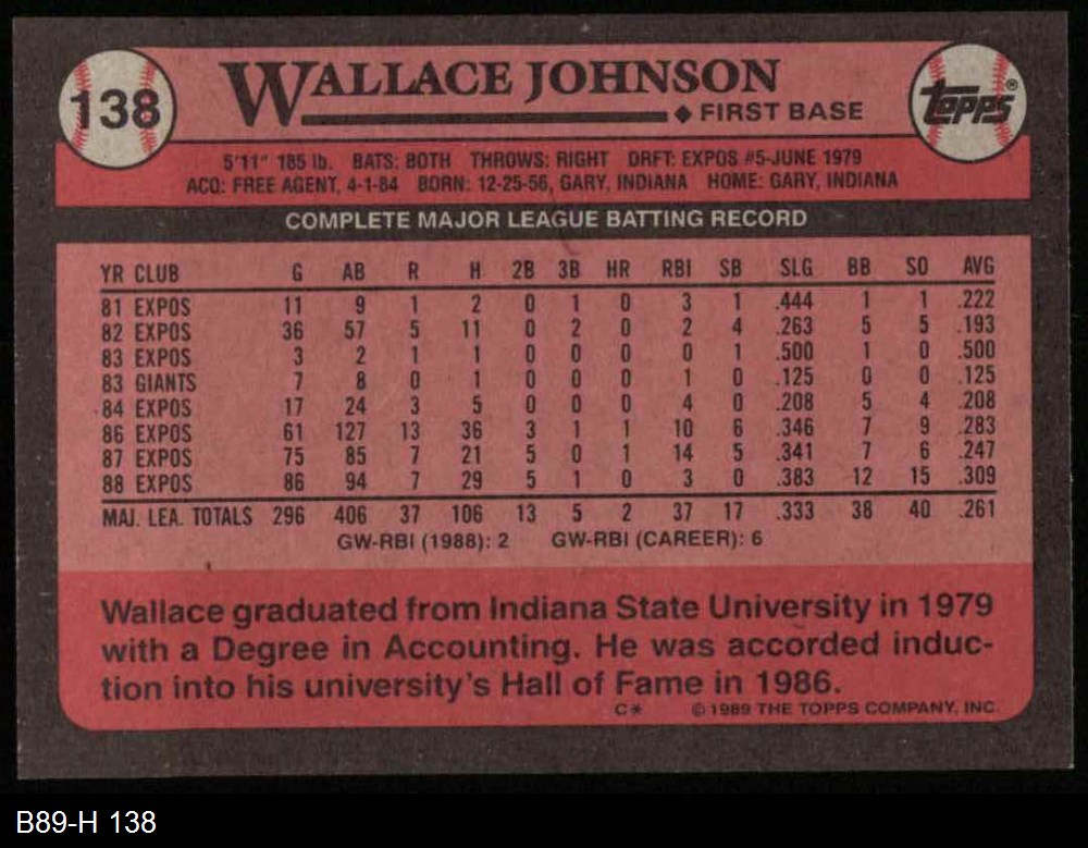 1989 Topps #138 Wallace Johnson 8 - NM/MT