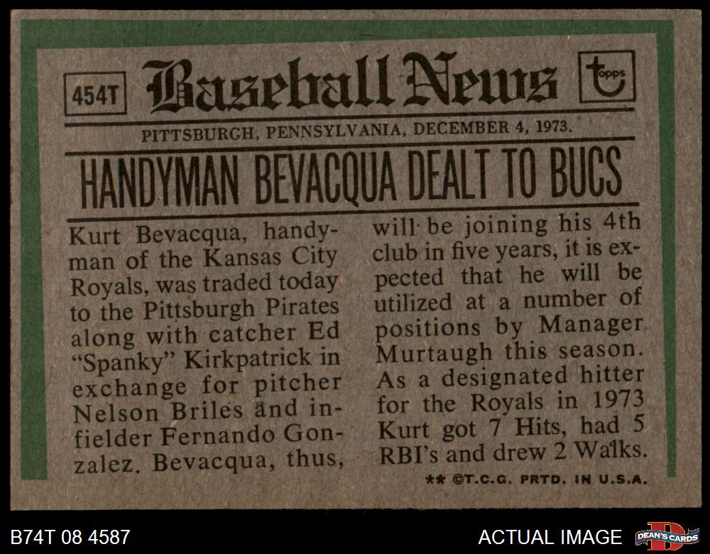 1974 Topps Baseball Cards (16,096 available)1974 Topps Traded Pirates (142 available)