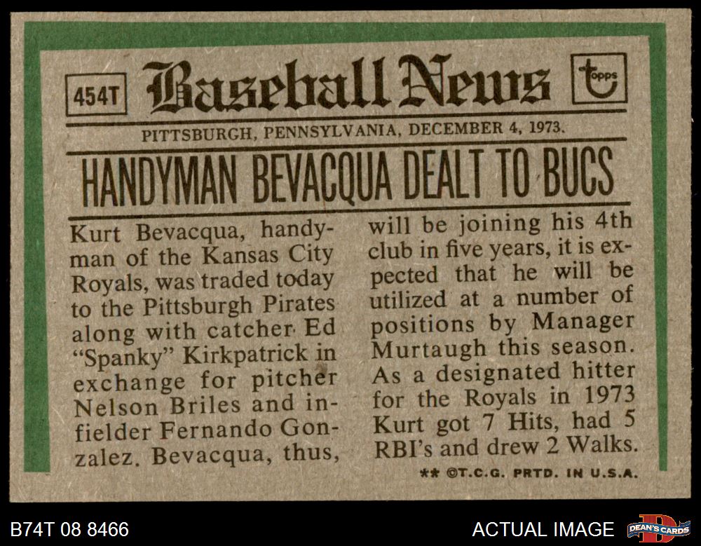 1974 Topps #454 T - Kurt Bevacqua Traded 6 - EX/MT