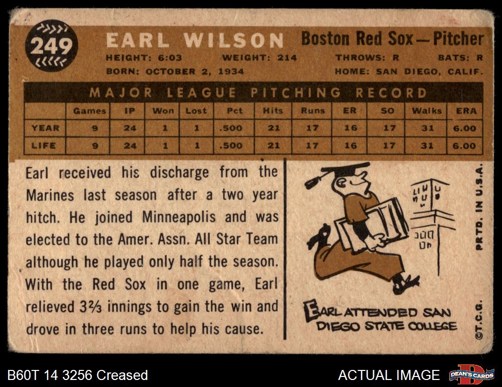1960 Topps #249 Earl Wilson 2 - GOOD