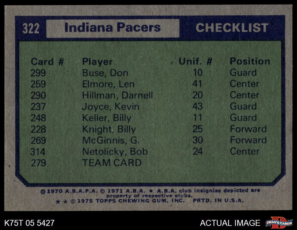 1975-76 Topps Basketball Cards (2,959 available)1975 Topps Pacers (103 available)
