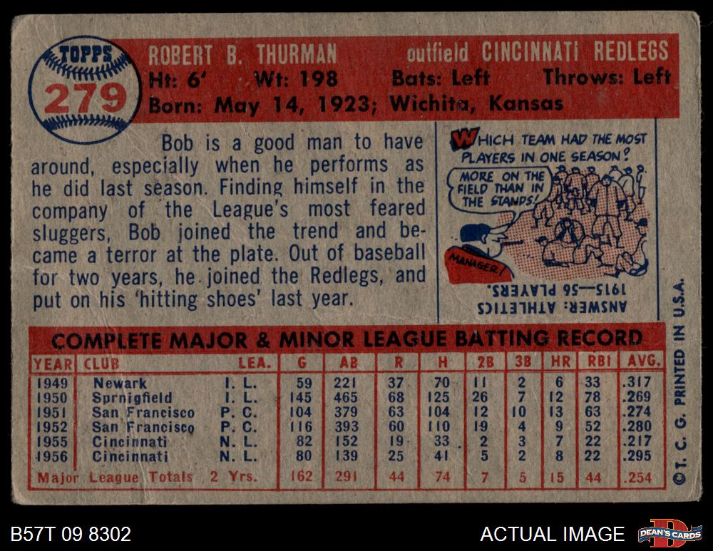 1957 Topps #279 Bob Thurman 1.5 - FAIR