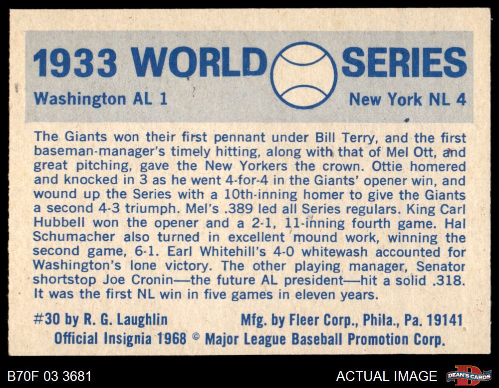 1970 Fleer World Series #30 - Mel Ott 1933 Giants vs. Senators 8 - NM/MT