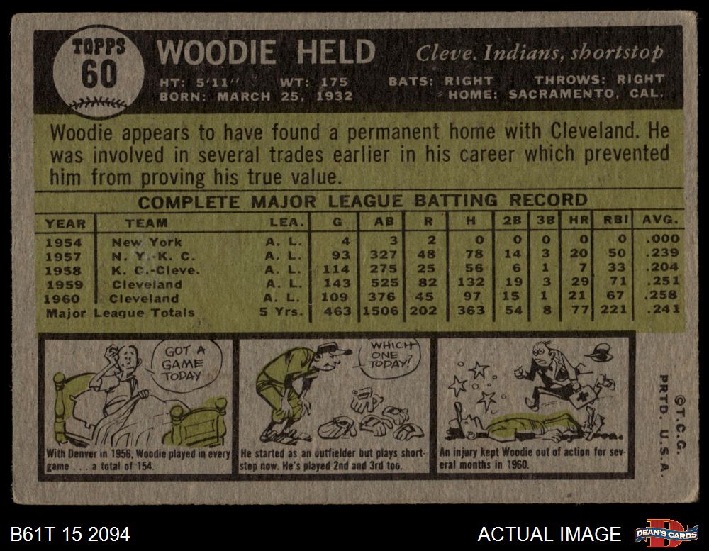 1961 Topps #60 Woodie Held 2.5 - GD+