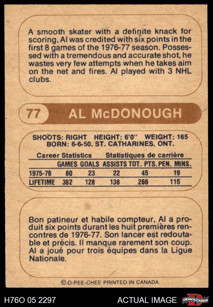 1976 O-Pee-Chee WHA #77 Al McDonough 5 - EX