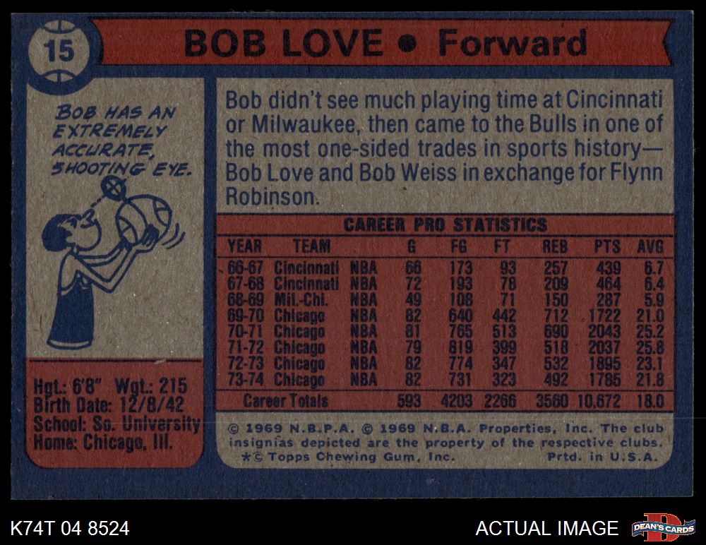 1974 Topps #15 Bob Love 4 - VG/EX