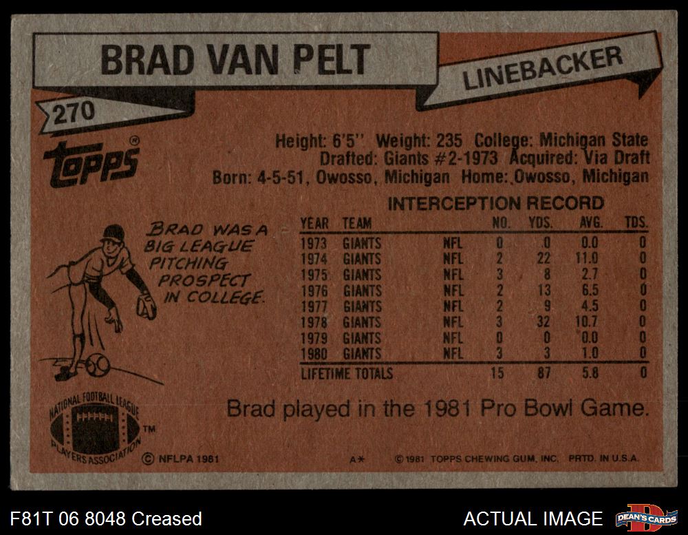 1981 Topps #270 Brad Van Pelt Front Thumbnail