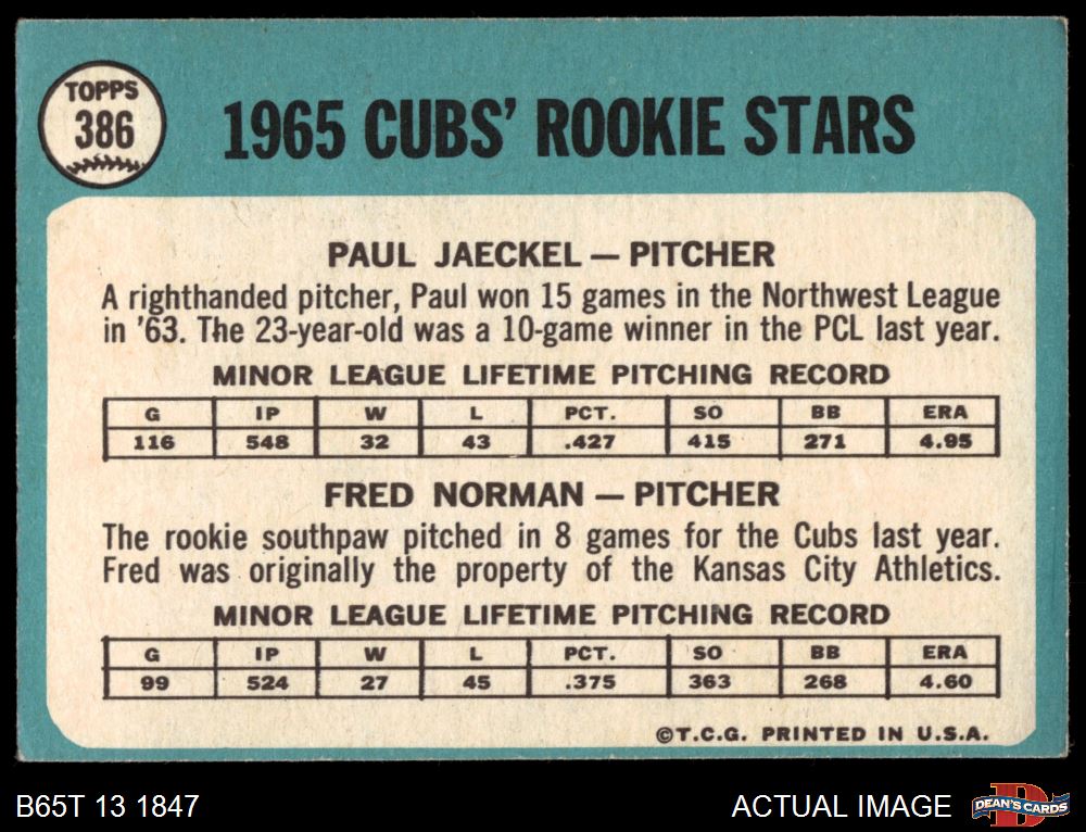 1965 Topps #386 - Fred Norman / Paul Jaeckel Cubs Rookies 3 - VG
