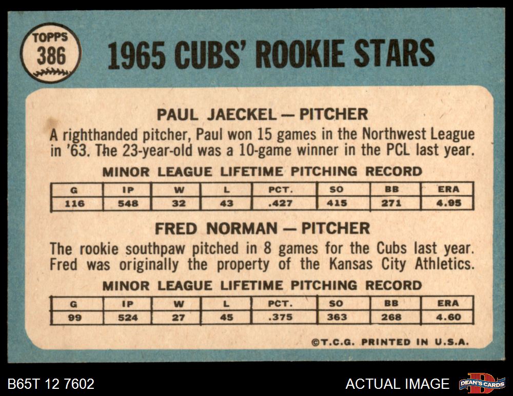 1965 Topps #386 - Fred Norman / Paul Jaeckel Cubs Rookies 4.5 - VG/EX+