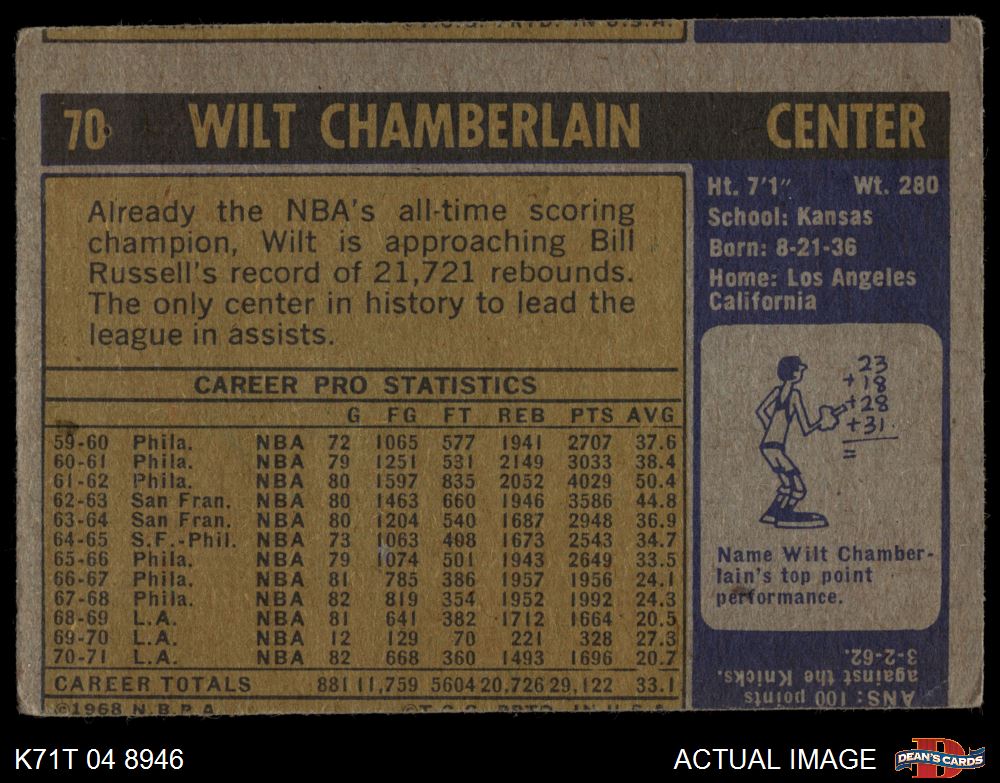 1971 Topps #70 Wilt Chamberlain 1.5 - FAIR