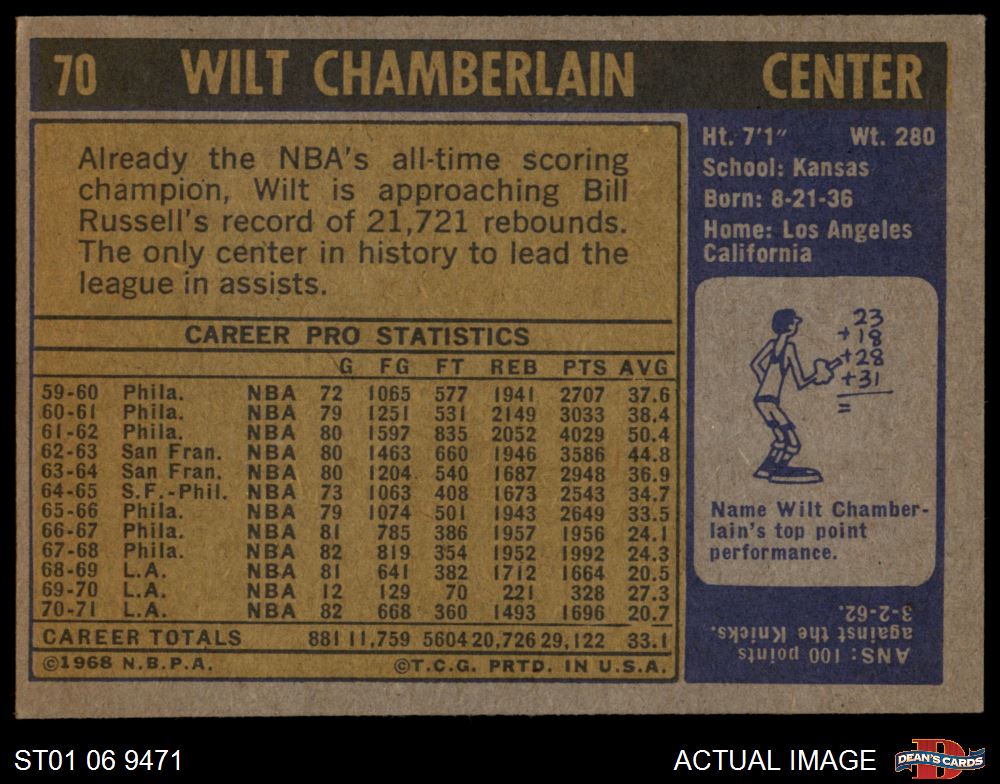 1971 Topps #70 Wilt Chamberlain 4 - VG/EX