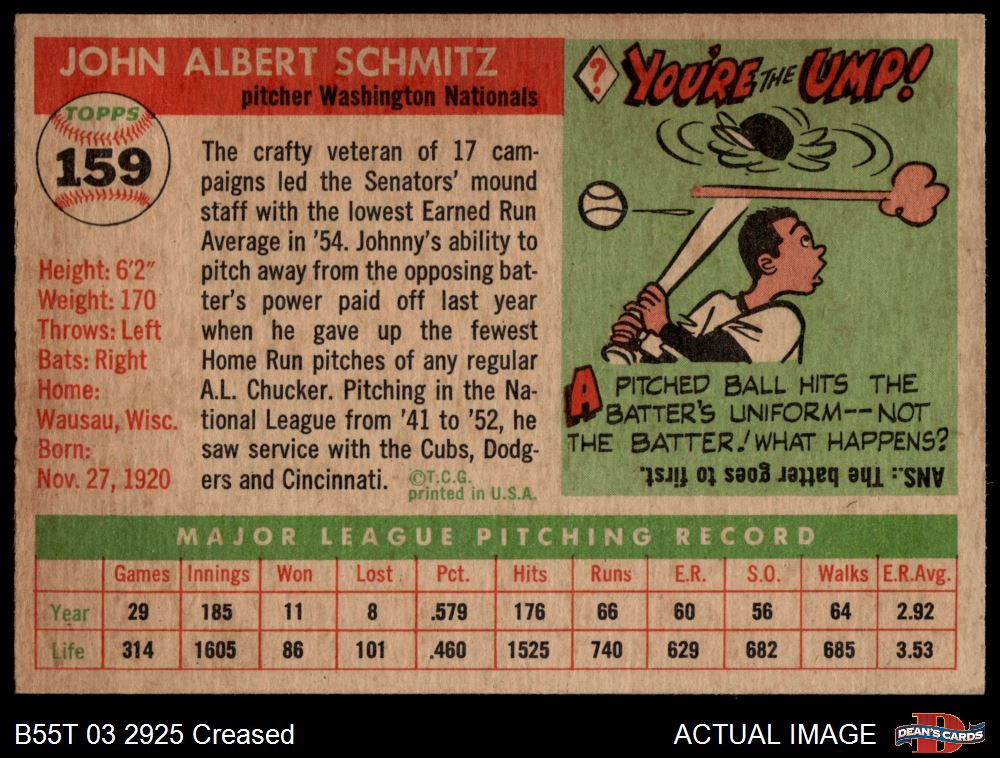 1955 Topps #159 Johnny Schmitz 3.5 - VG+