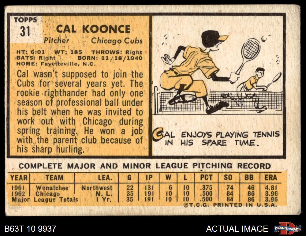1963 Topps #31 Cal Koonce 2 - GOOD