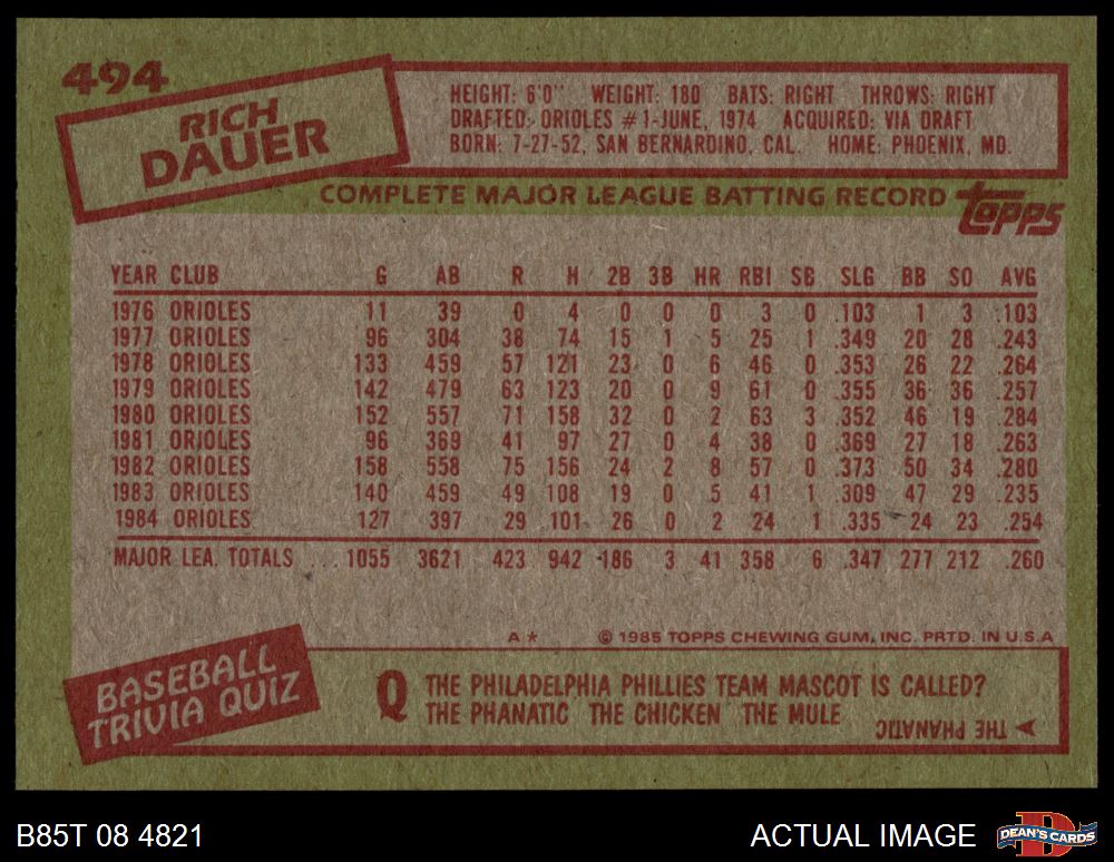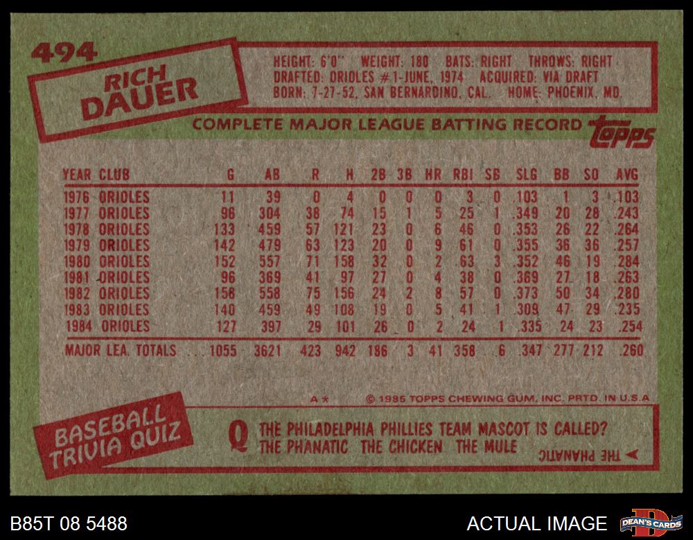 1985 Topps #494 Rich Dauer 8 - NM/MT