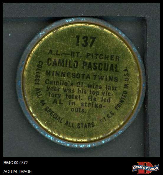 1964 Topps Coins #137 - Camilo Pascual All-Star 2 - GOOD