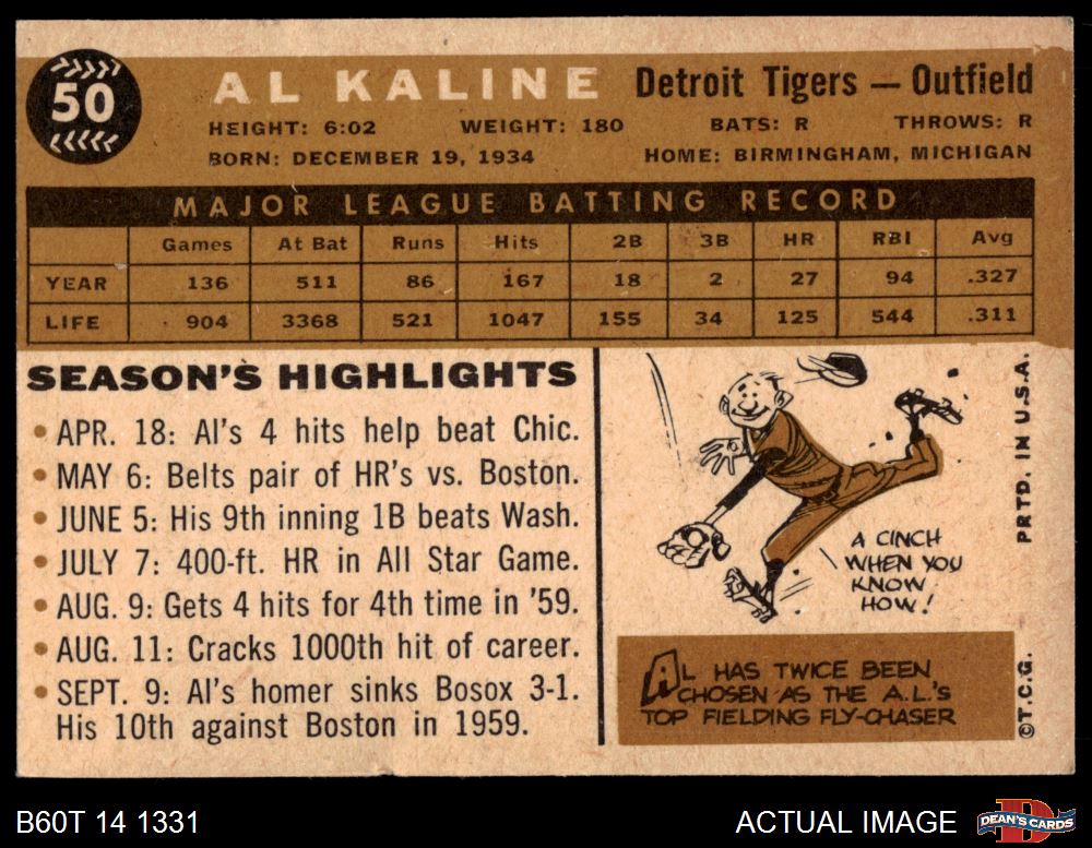 1960 Topps #50 Al Kaline 4 - VG/EX