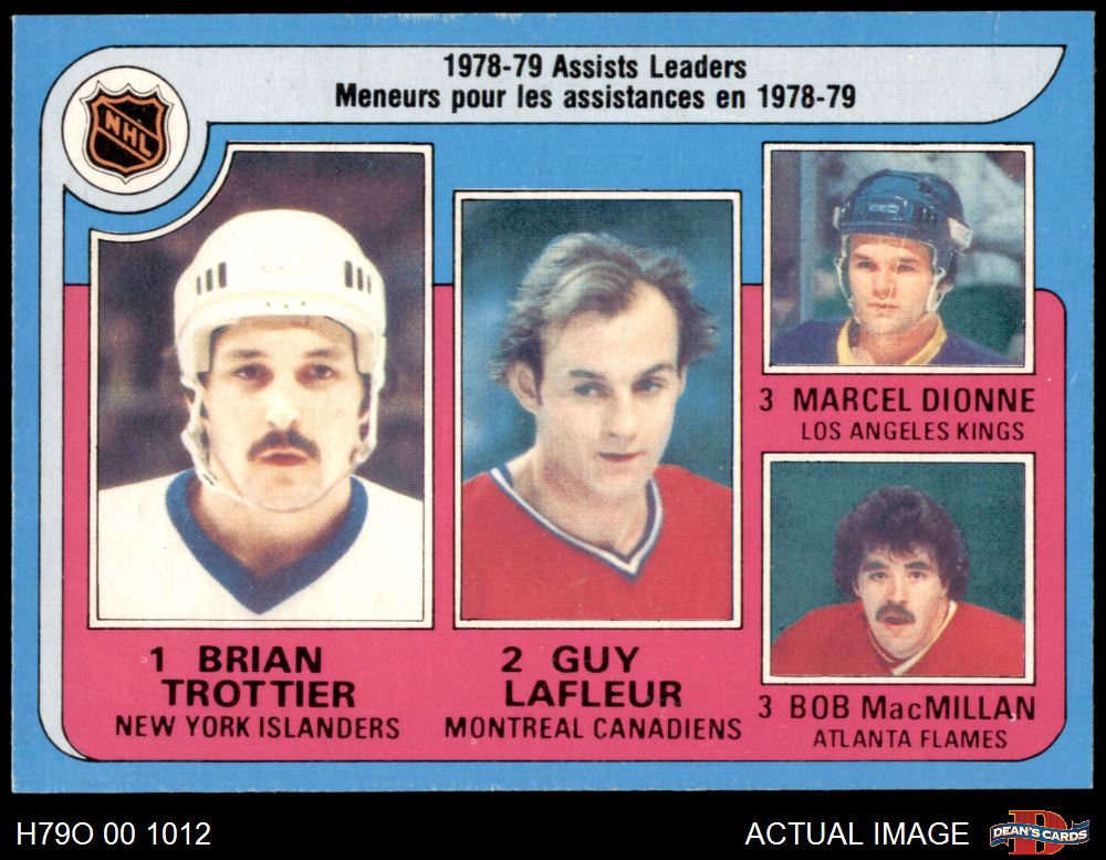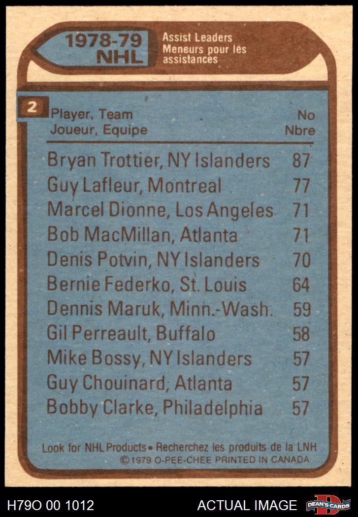 1979 O-Pee-Chee #2 - Brian Trottier / Guy LaFleur / Marcel Dionne / Bob MacMillan Assists Leaders 7 - NM