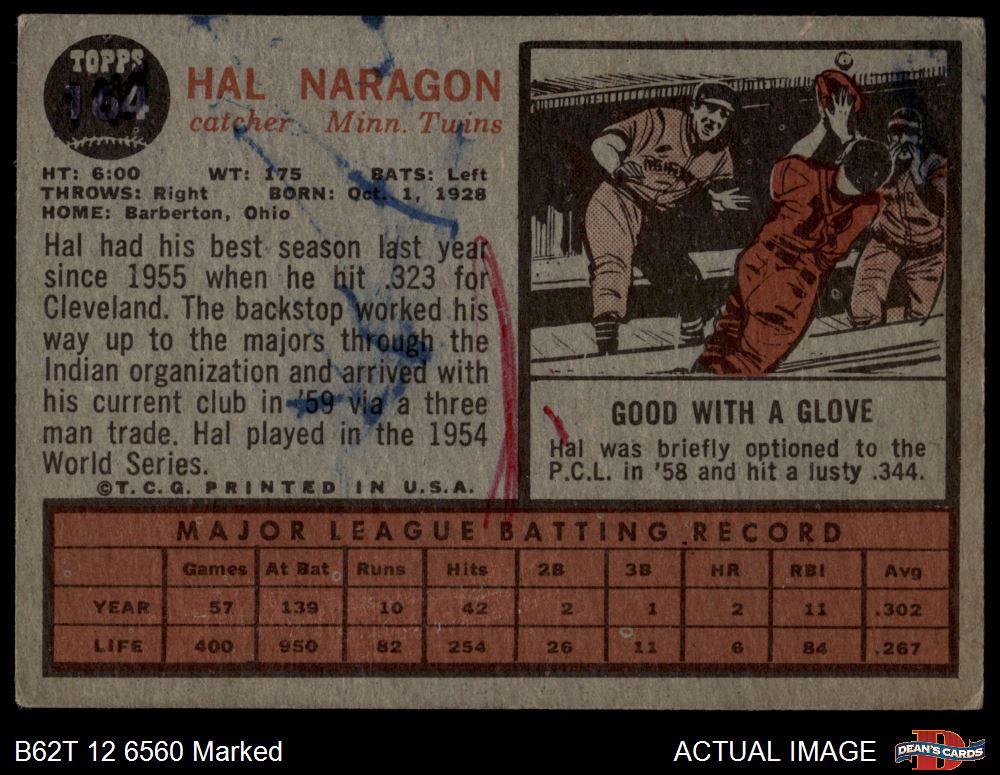 1962 Topps #164 GRN Hal Naragon 1.5 - FAIR