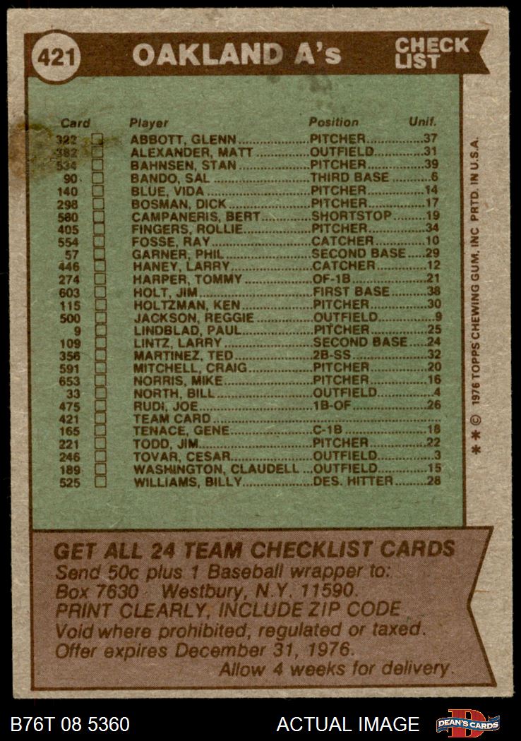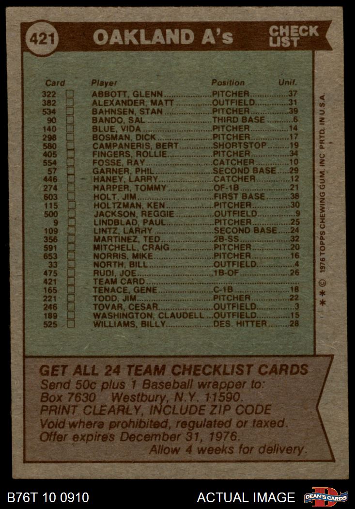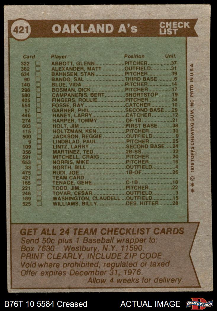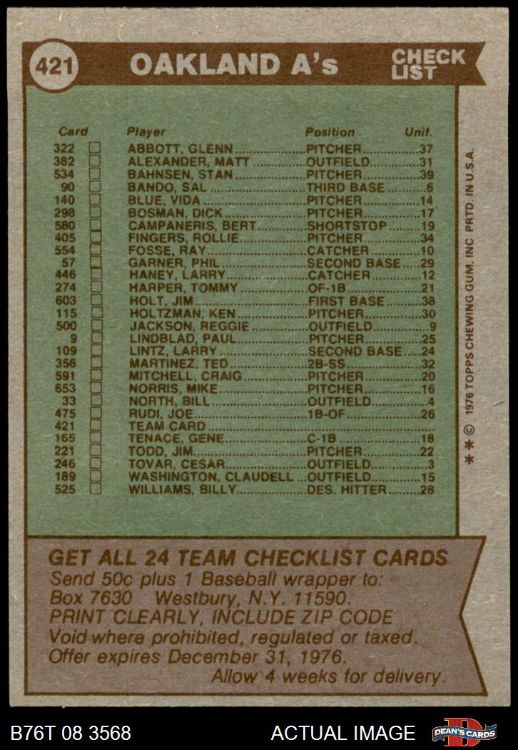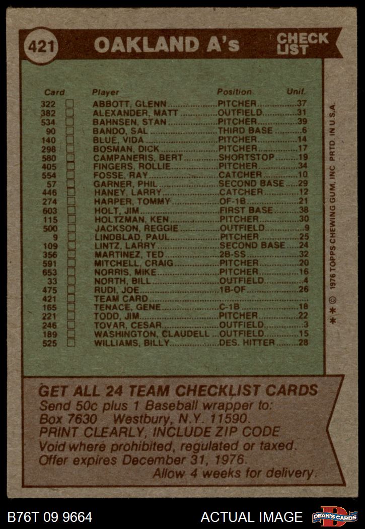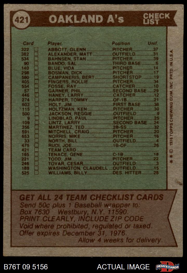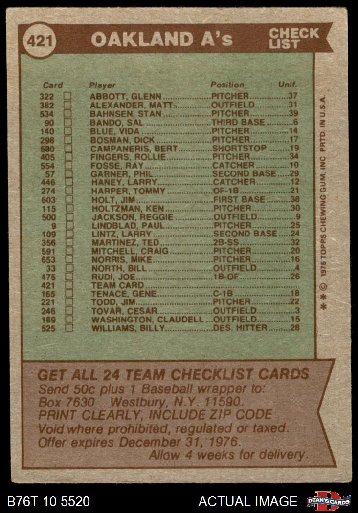 1976 Topps Baseball Cards (16,378 available)1976 Topps Athletics (770 available)