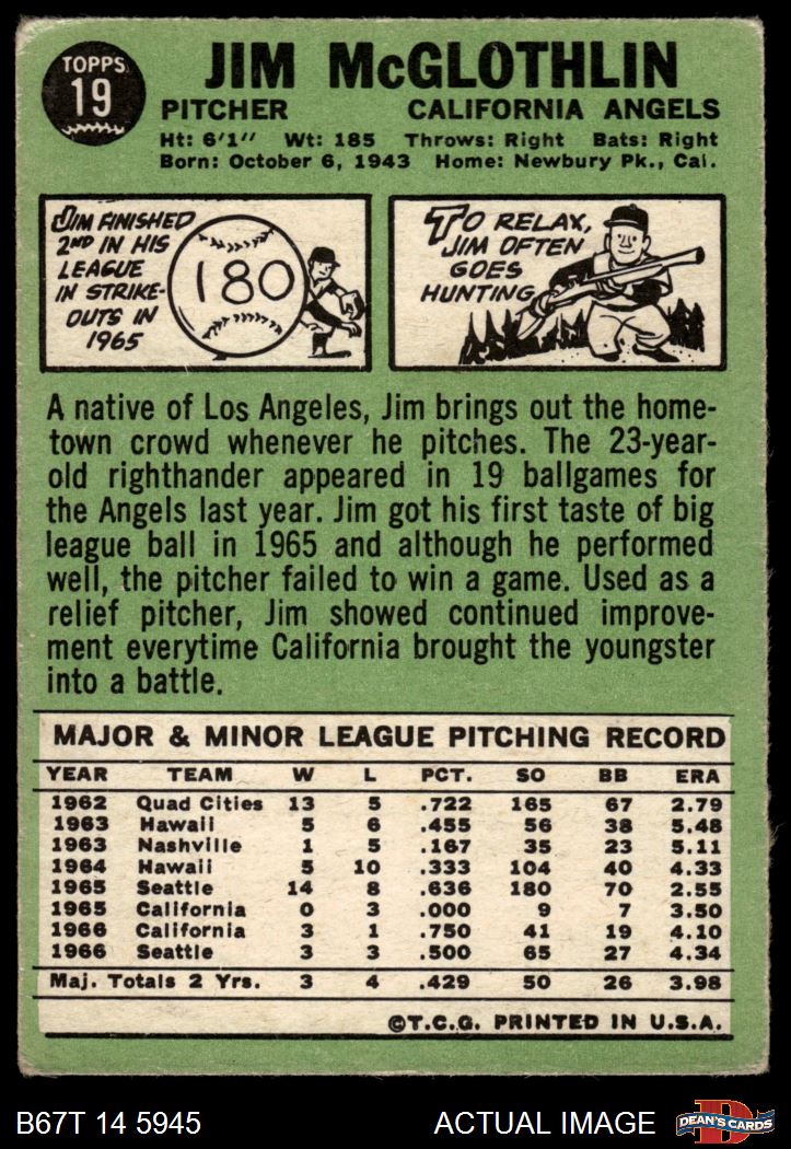 1967 Topps #19 Jim McGlothlin 1.5 - FAIR